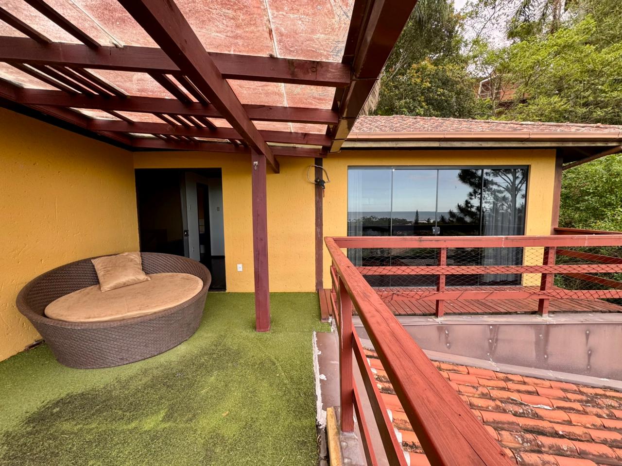 A casa possui uma ampla sacada, área de serviço, banheiro social, varanda, cozinha equipada com armários embutidos, roupa de cama, máquina de lavar, fogão e geladeira. Além disso, conta com churrasqueira, ar condicionado, sala de estar com TV, vista panorâmica, utensílios de cozinha, jardim, deck, escada, janelas amplas, lavanderia, quintal e varanda integrada.