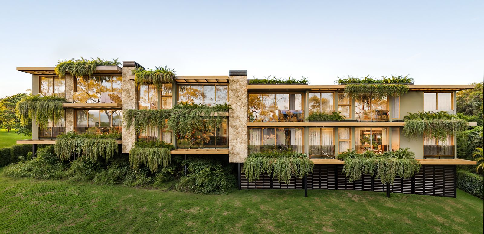 Plantas que priorizam privacidade, conforto e integração com a natureza.