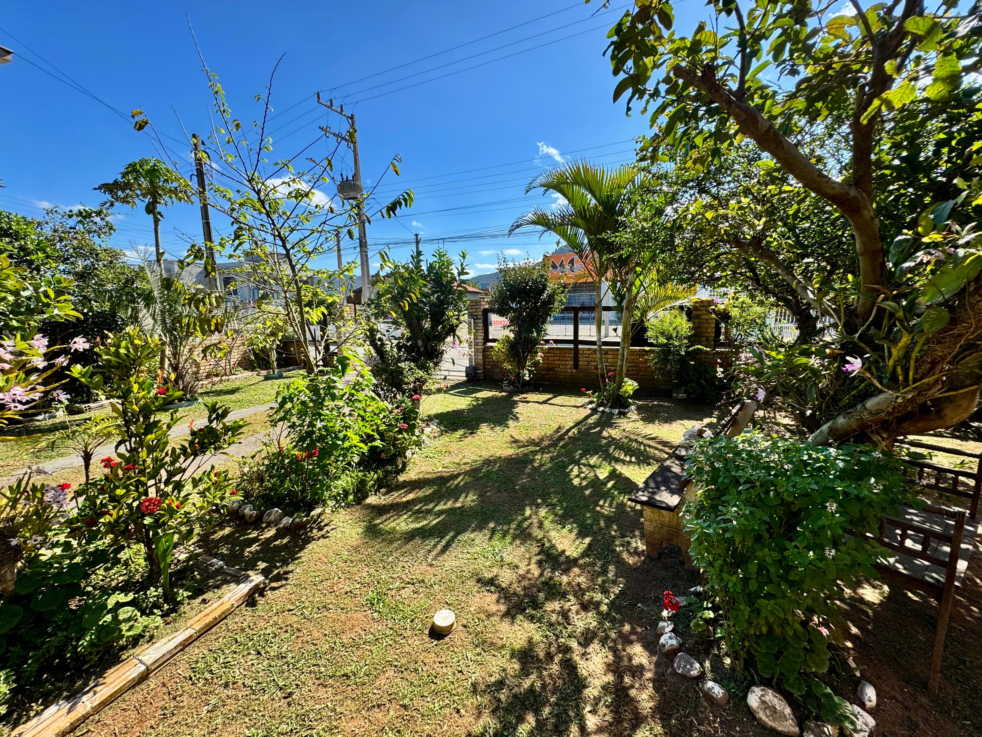 O imóvel dispõe de vagas para 4 carros cobertos e mais 3 vagas descobertas, além de diversas árvores frutíferas já em produção, proporcionando um ambiente agradável e acolhedor.