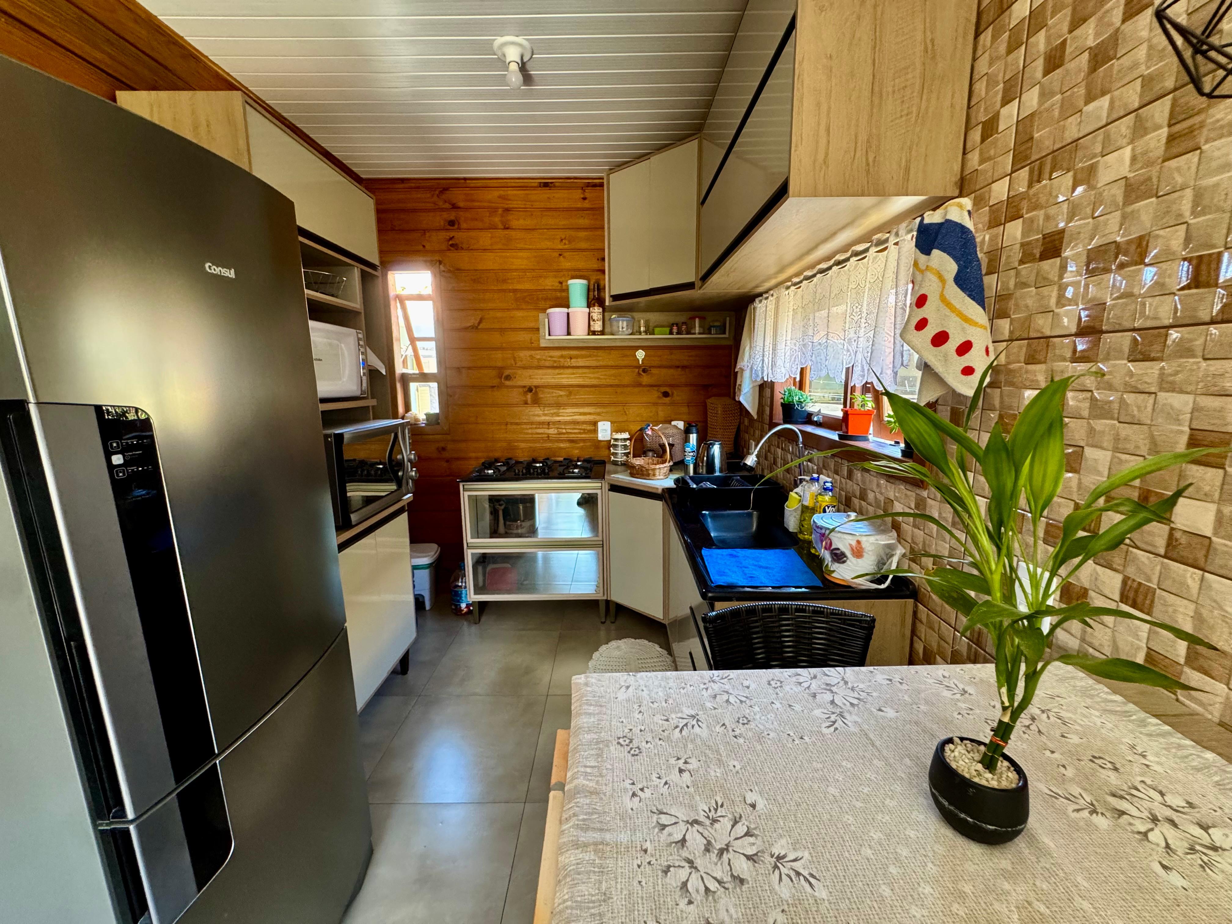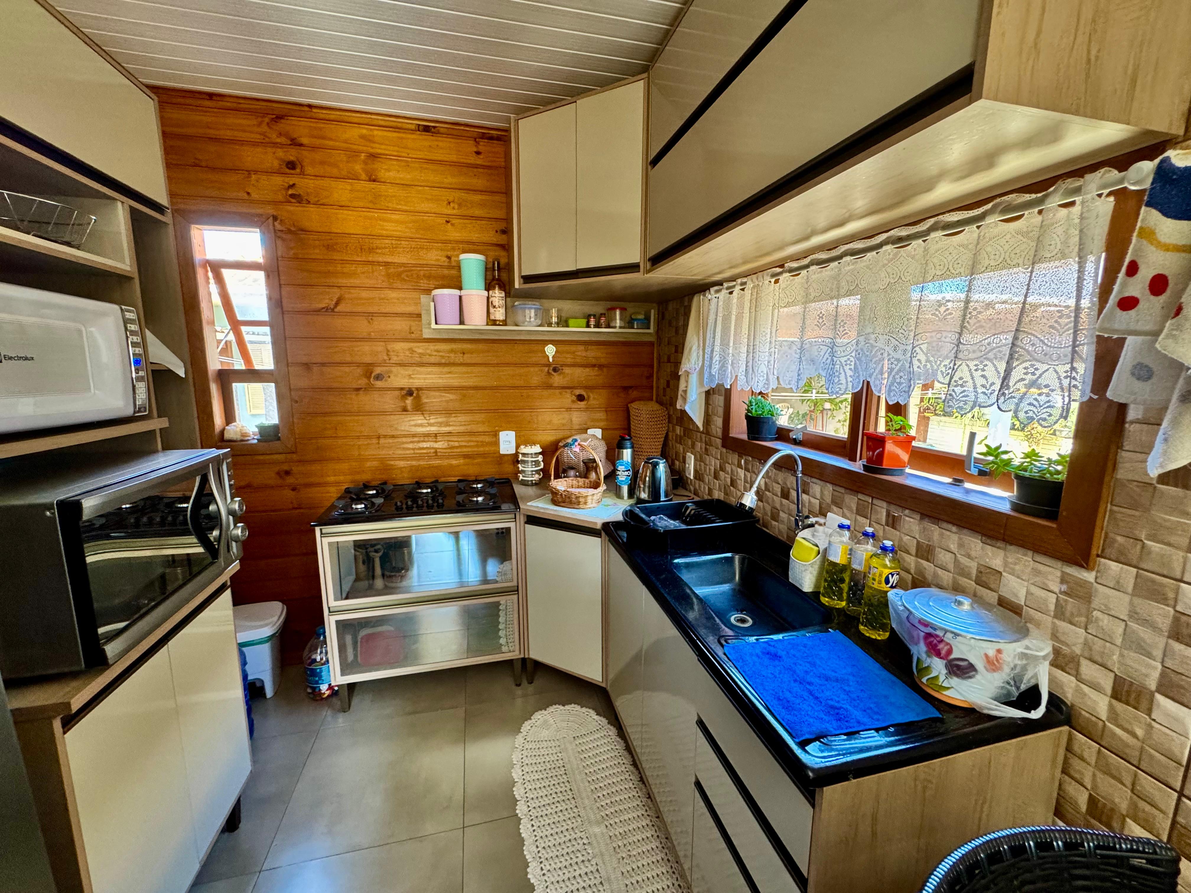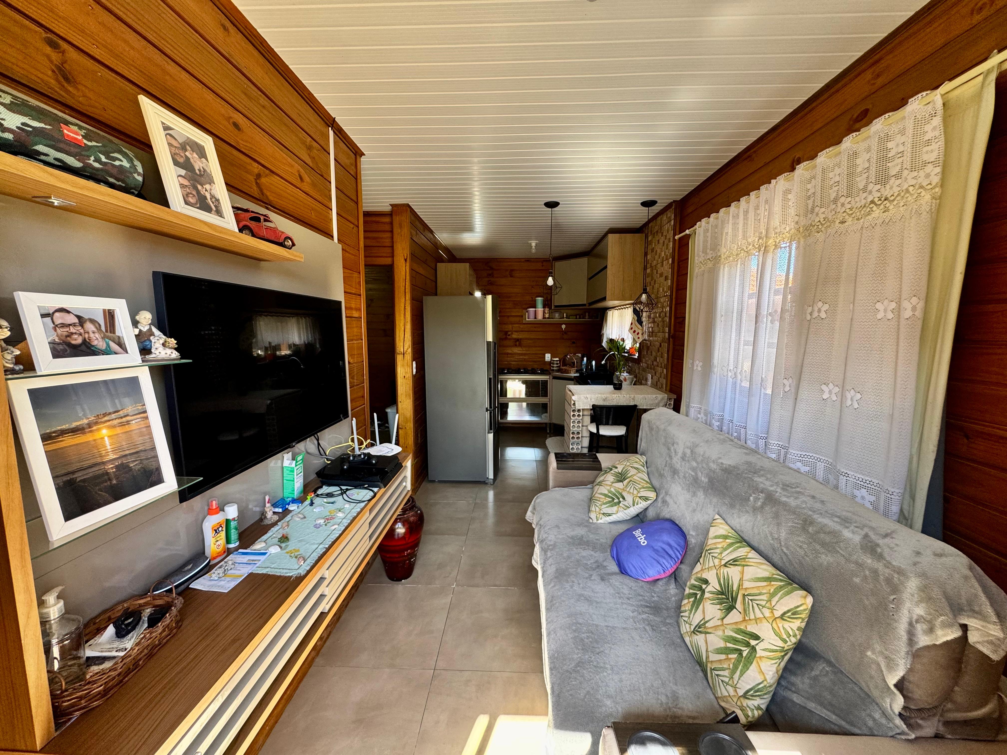 A segunda casa, pré-fabricada de madeira tratada e toda duplada, possui 42m², com 2 dormitórios, sala e cozinha conjugadas, banheiro e lavanderia, sendo uma opção charmosa e funcional para moradia ou locação.